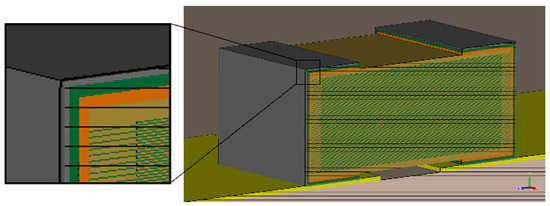 For discovering of specific signatures in the magnetic probe aperture map induced by presence of the passive components, detailed models of these components were created. The 0805 element form factor was chosen for the model size. The material composition and internal layer distribution of the components was acquired from the user manual component specifications and technical spreadsheets provided by manufacturers TDK, Wurth and Murata. The geometry of the resistive component is presented in Figure 9.