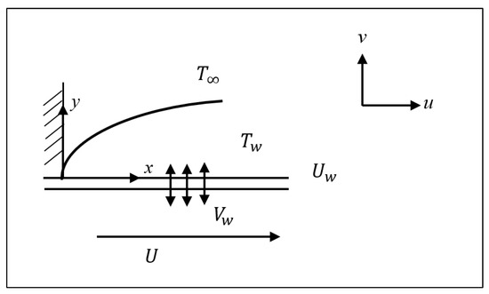 - Tsou, F.K.; Sparrow, E.M.; Goldstein, R.J. Flow and heat transfer in the boundary layer on a continuous moving surface. Int. J. Heat Mass Transf. 1967, 10, 219–235. [Google Scholar] [CrossRef]