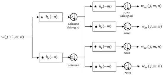 In 2D wavelet transform analysis, the one-dimensional wavelet decomposition is initially applied to the columns. In this process, the low-pass and high-pass are useful to generate sub-images containing the high frequency and low-frequency components, respectively. In the following step, the two sub-band images are again decomposed using the one-dimensional wavelet decomposition, which makes the four sub-band images, i.e., approximation, horizontal details, vertical details, and diagonal details. Figure 9 presents the wavelet decomposition of a 2D image and its output. For calculating the frame energy, the energy of each pixel is calculated by summing the energy of pixel of horizontal, vertical, and diagonal components. Ultimately, the frame average energy is calculated by averaging the energies of all pixels. Equation (8) presents the formula for calculating the energy of each pixel, and Equation (9) presents the formula of a selected frame. Figure 10 presents the spatial energies of frames with non-smoke and smoke moving objects.