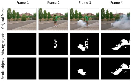 Commonly, smoke expands upward and in other directions with the influence of wind. Alternatively, the other smoke-like moving objects, i.e., car light movement, move in a horizontal direction, whereas a smoke-like static object, i.e., an electric bulb, has a static position.
