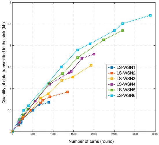 Quantity of data sent by from the considered LS-WSNs to the base station (BS).