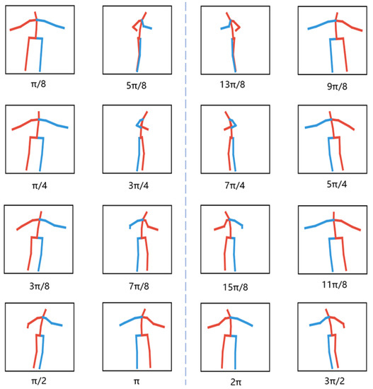 Multi-view 2D poses generated by rotation. Each pose is symmetrical with it after rotating .