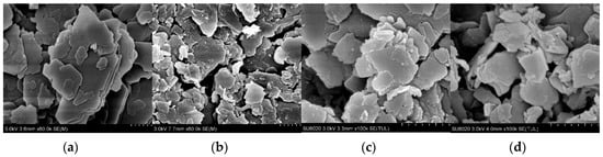 The surface morphology of all kaolinite samples. (a) K-1; (b) CK-2; (c) CK-3; (d) CK-4.