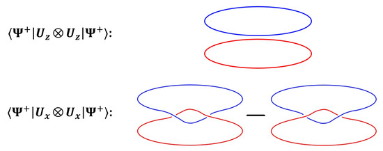 The corresponding amplitudes for the loop are shown in Figure A2. Note that these two types of entangled states naturally generalize the homotopic loops defined by the and rotation for the Bell-state shown in Figure 8.