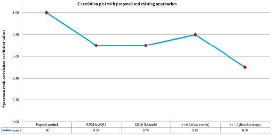 For the SWARA procedure, the opinions of the experts are a significant part of the assessment of criteria weights. The DE gives the preferences of every criterion on the basis of their information and practices (see Table 6). In Table 7, the criterion with the highest significance degree is ranked first, and less significant criteria are at the next levels. Now, with the use of Equations (9)–(11) and Table 7, the final criteria weights are as follows: