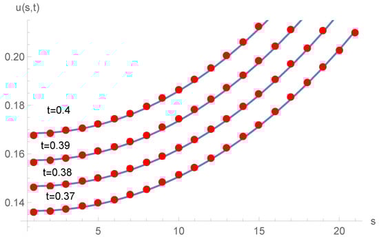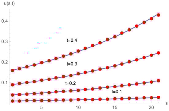Figure 4 shows the computational outcomes and exact solutions for various time steps.