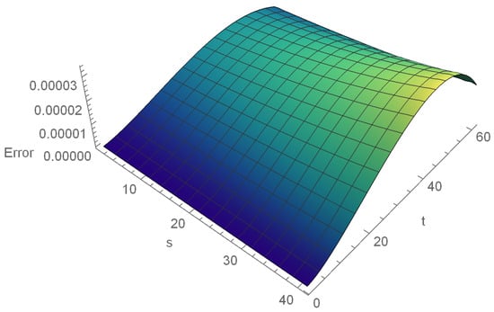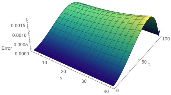 Figure 6 depict the error plot and space-time graph of Example 2 at