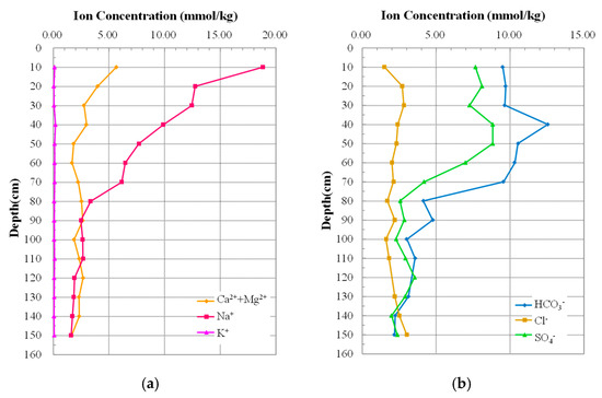 Change of ion concentration with depth: (a) distribution of anions; (b) distribution of cations.