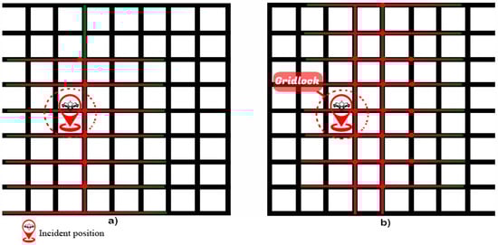- The traffic on each road segment and in each direction is constant, all data are obtained according to the literature, and there will be no changes in the travel area, regardless of the cause of congestion, except for metered and automated traffic through intelligent traffic light systems.
