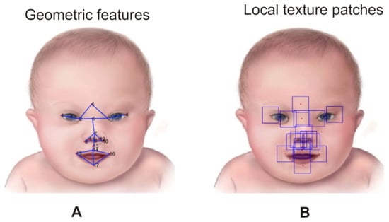 - Cerrolaza, J.J.; Porras, A.R.; Mansoor, A.; Zhao, Q.; Summar, M.; Linguraru, M.G. Identification of dysmorphic syndromes using landmark-specific local texture descriptors. In Proceedings of the 2016 IEEE 13th International Symposium on Biomedical Imaging (ISBI), Prague, Czech Republic, 13–16 April 2016; pp. 1080–1083. [Google Scholar]