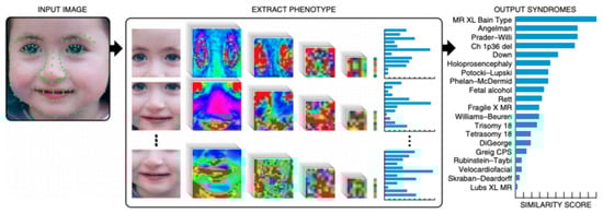 - Gurovich, Y.; Hanani, Y.; Bar, O.; Fleischer, N.; Gelbman, D.; Basel-Salmon, L.; Krawitz, P.; Kamphausen, S.B.; Zenker, M.; Bird, L.M. DeepGestalt-Identifying rare genetic syndromes using deep learning. arXiv 2018, arXiv:1801.07637. [Google Scholar]