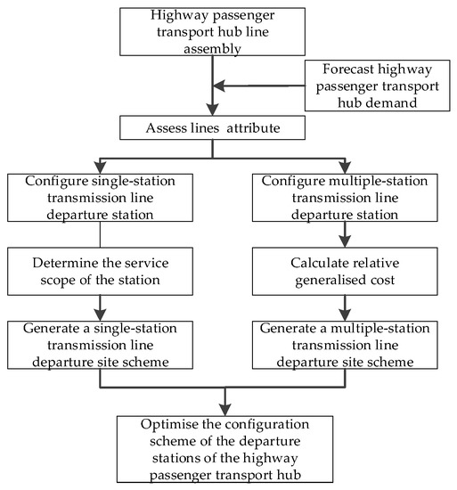 In the configuration of urban highway passenger transport hubs, the first step is to select a reasonable departure station in the hub system—that is, to configure the departure station. During this step, the following four goals need to be achieved: to meet the travel demand of road passengers, to reduce passengers’ relative generalised travel cost, to control the impact of road passenger transport on urban traffic operation, and to make intensive and efficient use of various resources and energy.
