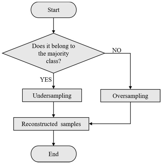 There are two approaches used to solve the sorting problems of imbalanced data in the major class. The first strategy is fundamentally data-based, which involves balancing samples with different classes of undersampling methods and oversampling methods [,,,,], such as the random resampling method and the synthetic minority oversampling technique (SMOTE). The other is rooted in algorithms, which involve optimizing classical sorting algorithms, such as integrated learning, cost-sensitive learning [], single-class learning [], and active learning; this strategy takes advantage of imbalanced supplemented data to keep the characteristics of the original data distribution such that the classification precision and identification ability is increased [,,].