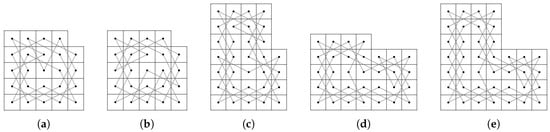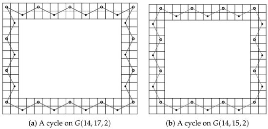 Recall that the LB has a CKT for all . In addition, from Figure 2b–e, Figure 3 and Figure 4, each CKT of the LB contains edges , , and . Furthermore, from Figure 2a,c–e, Figure 3 and Figure 4, each CKT of the LB contains the edge .