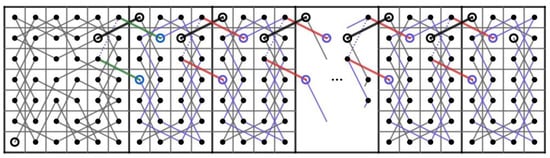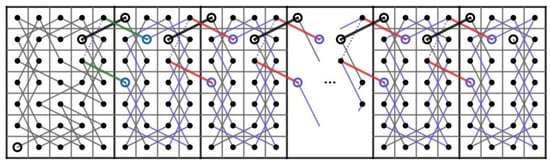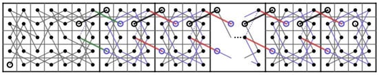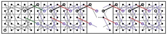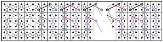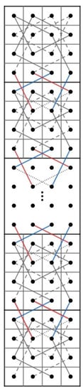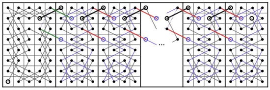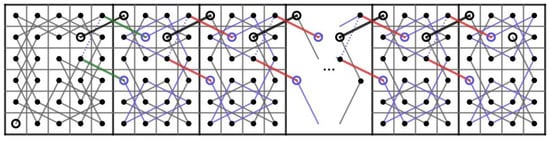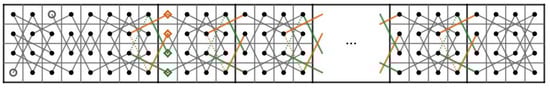Then, we construct two paths and on the CB() where . Let us connect t CB()’s in Figure 5 to the right of each other and do the following.