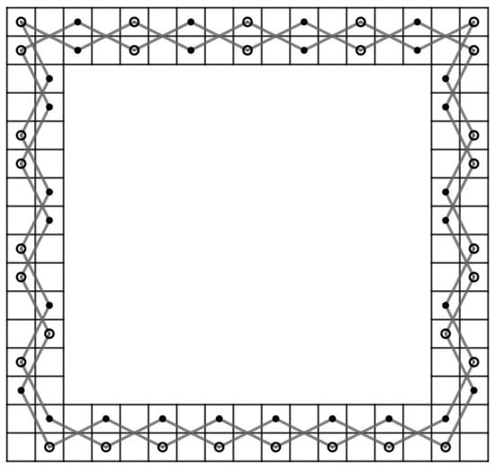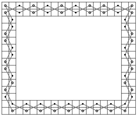 - If and , then join and of the CB() to and of the LB, respectively. If and , then join and of the LB to and of the CB() chessboard, respectively. Otherwise, join four pairs of vertices together.