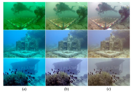 - Wang, Y.; Song, W.; Fortino, G.; Ql, L.-Z.; Zhang, W.; Liotta, A. An experimental-based review of image enhancement and image restoration methods for underwater imaging. IEEE Access 2019, 7, 140233–140251. [Google Scholar] [CrossRef]