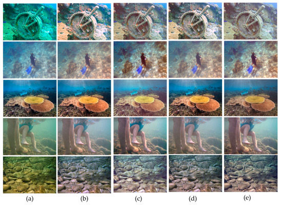 - Peng, Y.; Cosman, P.C. Underwater image restoration based on image blurriness and light absorption. IEEE Trans. Image Process. 2017, 26, 1579–1594. [Google Scholar] [CrossRef] [PubMed]