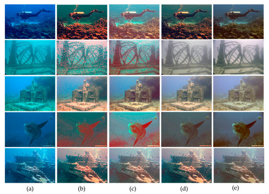 - Ancuti, C.; Ancuti, C.O.; Haber, T.; Bekaert, P. Enhancing underwater images and videos by fusion. In Proceedings of the 2012 IEEE Conference on Computer Vision and Pattern Recognition (CVPR), Providence, RI, USA, 16–21 June 2012; pp. 81–88. [Google Scholar] [CrossRef]