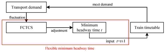 Compared with the complex railway network in eastern China, the railway lines in western China are sparse. In a normal transportation scenario, the transport demand in western area is generally low; however, during some special periods, the transport demand increases sharply, which brings a great challenge for train operation on these sparse lines. When higher demand occurs, the provided signaling resource may not adequately meet the given demand. Although we can operate trains with a longer headway—compared with the minimum one based on the existing signaling system, where the minimum headway time remains the same—it will also lead to a waste of signaling resources as implementing excessive signaling resources generates costs, especially in such areas with fluctuating demand and not so good operational conditions. Therefore, a new Chinese train control system based on flexible minimum headway time (FCTCS) is introduced and going to be implemented to attempt to meet the fluctuating transport demand for sparse railway lines. Using the new signaling system, it is more flexible to operate trains corresponding to the generated demand and makes it possible to save more operational costs, due to the flexible minimum headway. To explain clearly about the flexible minimum headway in FCTCS, we illustrate it in Figure 1.