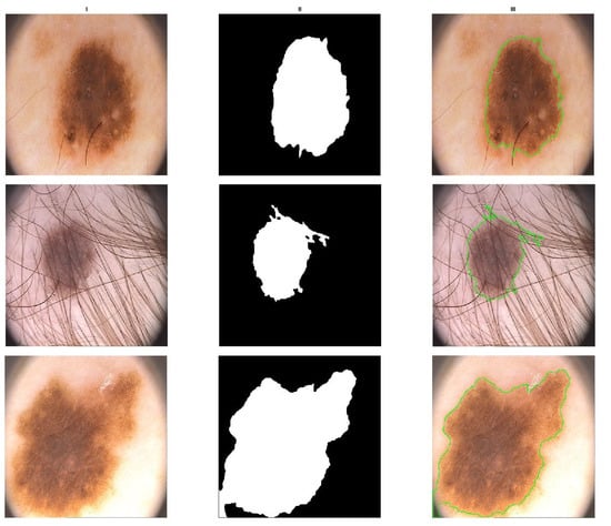 - Mendonça, T.; Ferreira, P.M.; Marques, J.S.; Marcal, A.R.; Rozeira, J. PH2- A dermoscopic image database for research and benchmarking. In Proceedings of the 2013 35th Annual International Conference of the IEEE Engineering in Medicine and Biology Society (EMBC), Osaka, Japan, 3–7 July 2013; pp. 5437–5440. [Google Scholar]