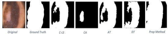 - Chan, T.F.; Sandberg, B.Y.; Vese, L.A. Active contours without edges for vector-valued images. J. Vis. Commun. Image R 2000, 11, 130–141. [Google Scholar] [CrossRef]