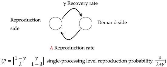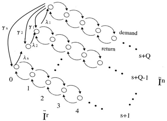In practice, product recycling will change its characteristics over time, so we assumed the time point {t ∈ T} (where T was the set of time points), and let Xt be the recovery state of the system at t. In most cases, although we did not know the certain value of the recovery state of the system at time t, it was a random variable, and a random recovery process {Xt} had the Markov property, Pr (Xt+1 = j|Xt = i, Xt−1 = I − 1, Xt−2 = i − 2, Xt−3 =i − 3, ….., X0 = 0) = Pr (Xt+1 = j|Xt = i), to calculate the inventory level with a continuous time Markov chain (Pawel et al. (2019) []).