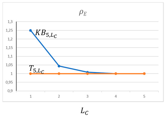 Figure 5. For LM = 5, ŁC = 4, and LC = 1, 2, …, 5, the topological roundness is plotted for both and isomeric graphs; when LC ≥ ŁC, the Klein bottle graphs are topologically equivalent to the tori .