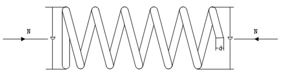 The goal of this design problem is to minimize the weight of the compression/tension spring [27]. Figure 7 shows the spring and parameters. In this problem, there are three variables and four constraints. These variables include the coil diameter (d), mean coil diameter (D) and number of effective coils (N). The mathematical model for this problem is: