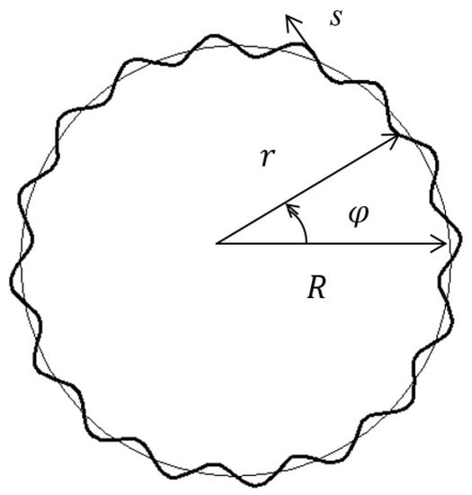 where R is the radius of the basic circular ring, equally spaced from the crests of the corrugation, is the corrugation depth (Figure 2), is the periodic function with period (pitch of corrugation), is the number of corrugations, and .