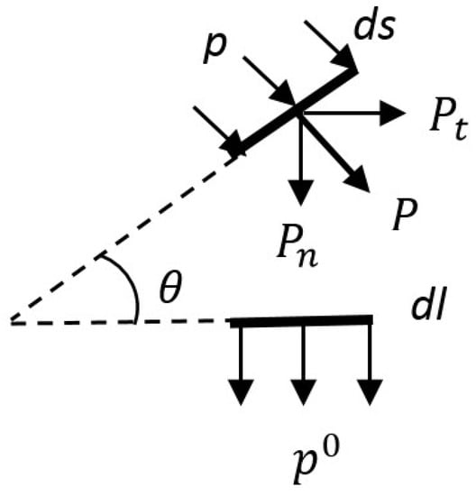 To evaluate the intensity of external pressure acting on an equivalent basic ring, we select arcs and (Figure 3). Projecting the load shows that the normal pressure on the basic ring is the same as the original one.