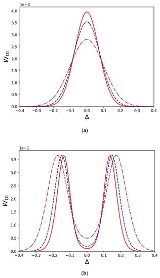 there is only one maximum at (see Figure 1a). With increasing electric field strength (i.e., Rabi frequency Ω10), this maximum became a minimum. When the inverse to (9) inequality held, two maxima appeared at the following detunings of the carrier frequency from the own oscillator frequency (according to Figure 1b):