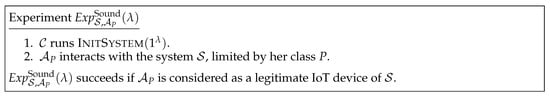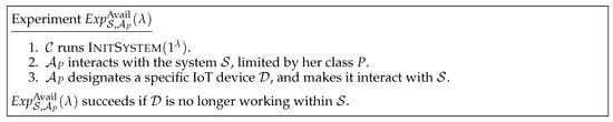 All the different oracles, selectors and restrictions allow to explicitly define the adversary’s capabilities during the game (called experiment in what follows) performed with the targeted IoT system to attack it. This is done with the concept of adversary class.