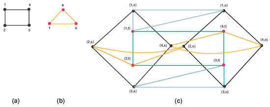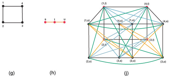 Figure 3. ( g ) G 1 C 4 , ( h ) G 2 P 3 and ( j ) Lexicographic Product ( C 4 · P 3 ) .