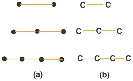 Figure 4. ( a ) P 2 , P 3 , P 4 are simple networks of alkanes and ( b ) P 2 , P 3 , P 4 are Lewis networks of alkanes.