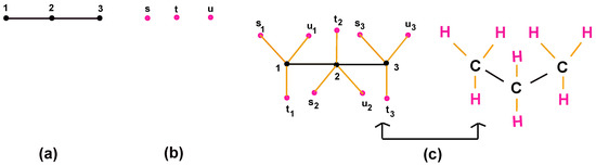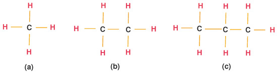 Figure 5. Lewis network of ( a ) Methane, ( b ) Ethane and ( c ) Propane.