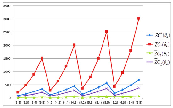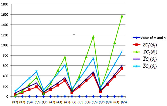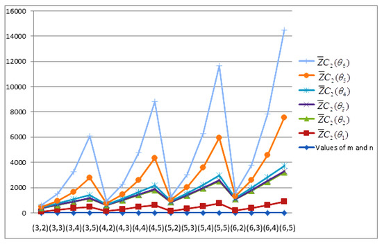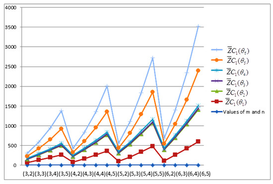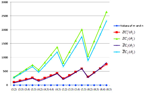 Table 4 and Figure 14 present the numerical and graphical behaviours of the upper bound values of Zagreb connection indices and coindices for cyclobutanes with respect to different values of m and n.