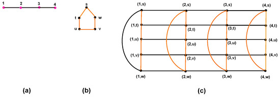 Figure 1. ( a ) G 1 C 4 , ( b ) G 2 C 3 and ( c ) Cartesian   Product ( C 4 × C 3 ) .