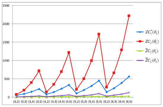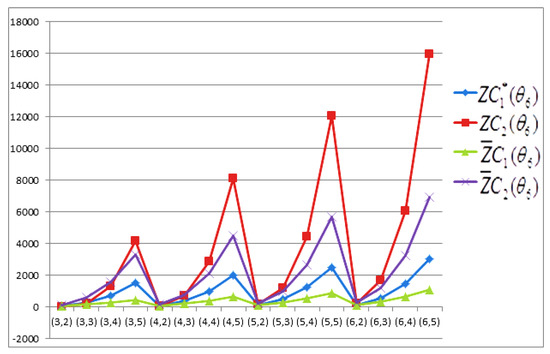 Table 3 and Figure 12 present the numerical and graphical behaviours of the Zagreb connection indices and coindices for alkanes with respect to different values of m and n.