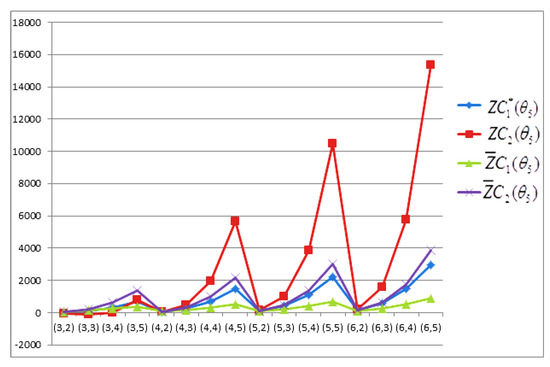Table 5 and Figure 16 present the numerical and graphical behaviours of the upper bound values of Zagreb connection indices and coindices for fence with respect to different values of m and n.