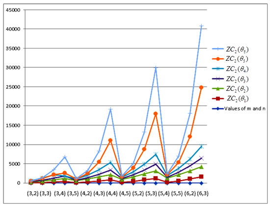 Z C 2 ( P m N n ) = 2 m n 3 2 n 3 + 8 m n 2 16 n 2 + 10 m n 26 n .