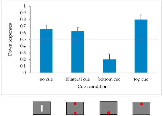 We calculated the mean proportion of downward responses and the standard deviation for both unilaterally cued conditions and excluded those participants with a response greater than or equal to three standard deviations from the mean value, resulting in 2 out of the 20 participants being rejected.