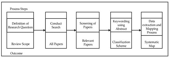 - Petersen, K.; Feldt, R.; Mujtaba, S.; Mattsson, M. Systematic mapping studies in software engineering. In Proceeding of the 12 International Conference on Evaluation and Assessment in Software Engineering, Swindon, UK, 26–27 June 2008; pp. 68–77. [Google Scholar]