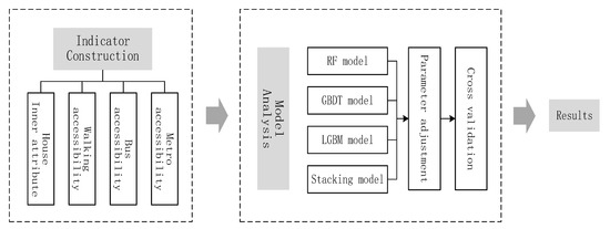 From the flow chart of house price prediction (Figure 2), it can be seen that this method has two advantages: one is to introduce traffic accessibility index, take walking, bus and metro as the carrier of urban spatial network, and analyze the causes of house price in the whole city. The other is to use a variety of machine learning algorithms to build a house price prediction model to ensure the prediction accuracy of the model.