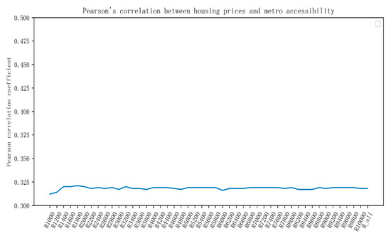 Next, we need to determine the optimal search radius. Figure 11 shows Pearson correlation coefficient of house price and metro accessibility under different radii. Select the radius with the largest coefficient as the best radius.