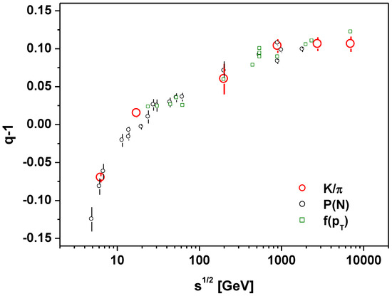 - Wibig, T. Non-extensivity Parameter of Thermodynamical Model of Hadronic Interactions at LHC energies. J. Phys. G 2010, 37, 115009. [Google Scholar] [CrossRef]