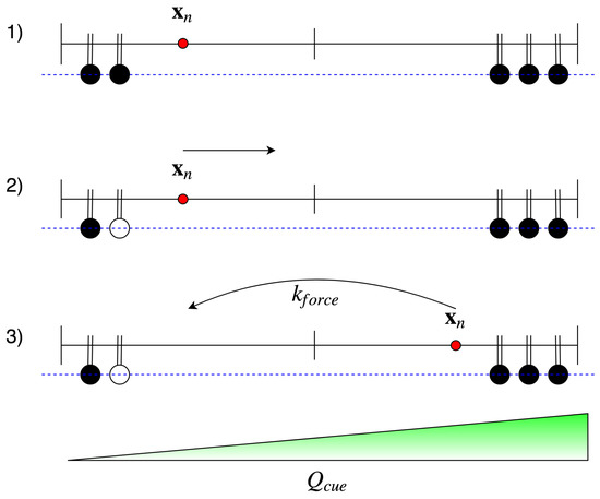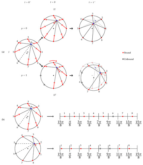 - At time , the index j of the FA event is chosen with probability and jump to new values:where is the standard basis vector. Note that due to Equation (8), we always have , since the probability of (un)binding of (un)bound FA is zero.