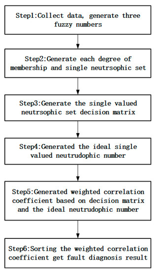 Based on the above analysis, properly handling the uncertain information in the fault diagnosis process is an important goal to be achieved, however, complicated and changeable environmental information, the mutual influence between the factors causing the failure are difficult to handle. Due to neutrosophic set’s outstanding performance in handling uncertain information issues, this paper proposes a single-valued neutrosophic set ISVNS algorithm, which generates neutrosophic set by triangular fuzzy number and introduces the formula of the improved weighted correlation coefficient.