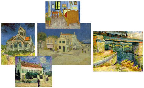 The goal of the scene design of the film and television works is: more than ten pieces of Van Gogh’s famous paintings are made three-dimensional by three-dimensional modeling, and then they are spliced into a European town with oil painting texture and presented in the form of VR. Figure 1 is a scene plan of Van Gogh in Dream, in which the scene pays special attention to its perspective relationship when it is made three-dimensional, so that it can achieve the effect of being substantially the same as the original painting when viewed from the head-up angle. The characters, which are also the characters in Van Gogh’s works, have another function to unify the proportion of the scene. Because the size ratio of each painting is different, they must be stitched together in an appropriate ratio when they are composed of the scene, so the size of the characters in each painting needs to be integrated with the entire scene.
