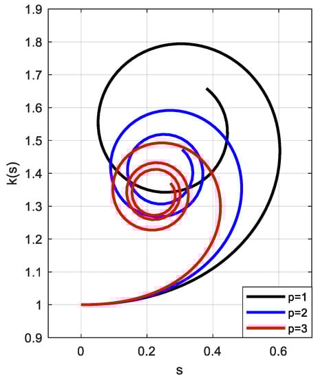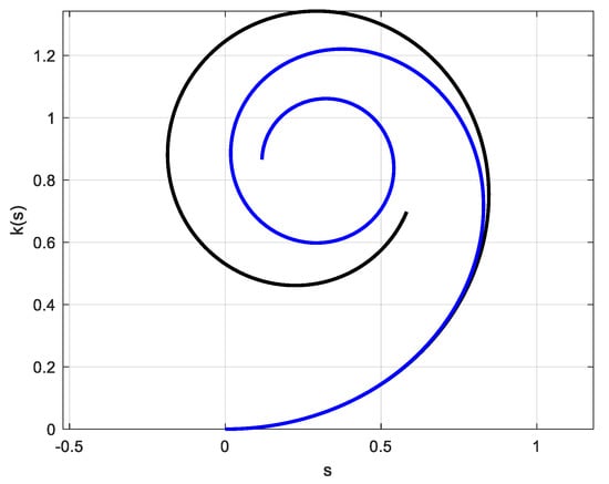 So, every curve with satisfies the inequality above. Taking for the representation of the approximate neutral curves we obtain a family of Euler spirals (Figure 4). The corresponding neutral curve has the curvature